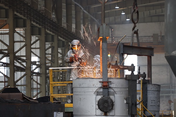 8月17日清晨,海川裝備公司180輥壓機(jī)軸承座澆注生產(chǎn)作業(yè)正在緊張有序地進(jìn)行中,為了保證這個(gè)重達(dá)近10噸的“大家伙”最終的澆注質(zhì)量,鑄造分廠澆注工程國(guó)強(qiáng)正在和工友們進(jìn)行著最后的測(cè)溫工作,厚重的鋁箔防火隔熱服內(nèi),汗水順著皮膚不斷滑落,而他們依舊全神貫注,他說(shuō):“鋼包測(cè)溫是澆注工序的最后一項(xiàng)重要工作,必須保證每個(gè)動(dòng)作規(guī)范到位,心靜自然涼,專(zhuān)注在手上,也就感覺(jué)不到熱了?!保▍雾嵶?攝)