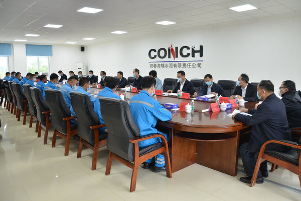 在公司生產(chǎn)調(diào)度中央控制室,蔡勝發(fā)介紹了海螺集團(tuán)概況,匯報(bào)了陽春海螺生產(chǎn)經(jīng)營、疫情防控、安全管理、能耗管控舉措以及海螺水泥在廣東區(qū)域發(fā)展和“十四五”規(guī)劃情況。