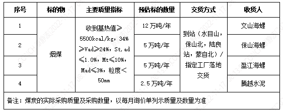 2.投標(biāo)人所提供煤炭礦點(diǎn)產(chǎn)能不低于30萬噸/年。