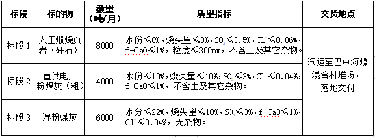 2.投標(biāo)人需具有較強(qiáng)的保供能力,標(biāo)段1月供貨能力不低于0.5萬(wàn)噸,標(biāo)段2不設(shè)置最低供貨量,標(biāo)段3月供貨能力不低于0.3萬(wàn)噸。同時(shí),為維護(hù)直供關(guān)系,貿(mào)易渠道貨源不能為川煤華榮公司下轄嘉川電廠、代池壩電廠及南江煤電公司粉煤灰資源。