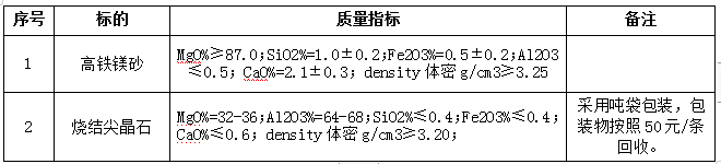 1.1招標(biāo)名稱:安徽海螺暹羅耐火材料有限公司高鐵鎂砂和燒結(jié)尖晶石招標(biāo)。
