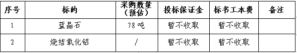 2、燒結氧化鋁因采購量不確定,本次招標僅作為本公司采購備用原材料??紤]上述原材料存在無執(zhí)行情況,投標保證金、標書工本費和合同履約保證金暫不收取。