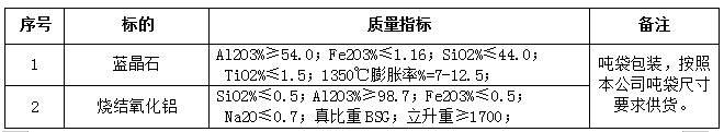 1.1招標名稱:安徽海螺暹羅耐火材料有限公司2024年1-2季度藍晶石和燒結氧化鋁二次招標。