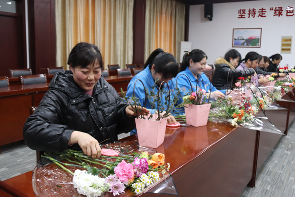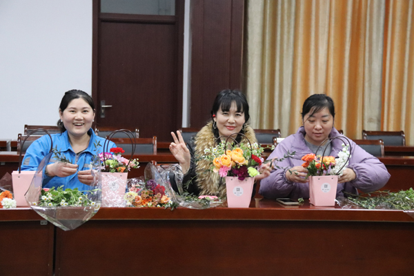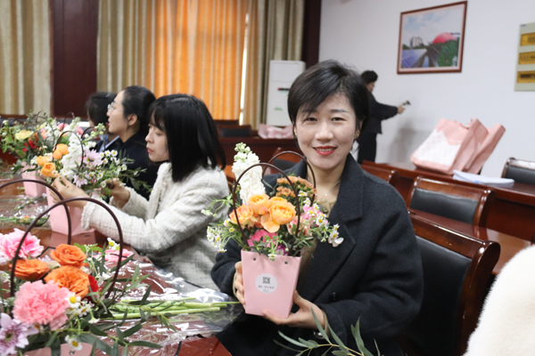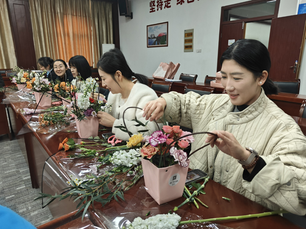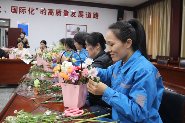 活動現(xiàn)場,花藝老師從鮮花品種、鮮花搭配和造型設計等方面進行了詳細的講解和現(xiàn)場示范。長桌上鋪滿了各色鮮花與花藝工具,嬌艷的玫瑰、靈動的洋桔梗、素雅的康乃馨……女職工們興致勃勃,邊學邊做,享受著親手創(chuàng)作的樂趣和插花藝術(shù)帶來的快樂。