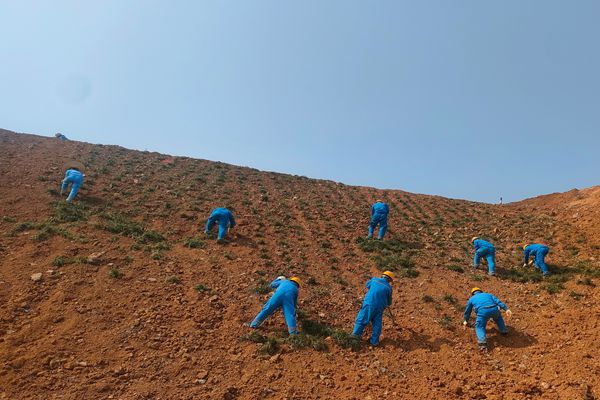 礦山種樹光有熱情還不夠,還要講究科學的種植方式。沒有植樹技術員怎么辦?不要緊!礦山穿爆班在工作中常常與巖石、土壤打交道,閑暇之時又經常開展復綠工作,早已是礦山苗木種植的“專家”。他們細心指導大家“樹坑還要多挖一寸深”“這個坑不夠寬,再挖點”“填土不要壓太實了,既要保持樹苗穩(wěn)固,又要保障透氣性......”,大家認真聽著植樹技巧,分工合作,有條不紊,干勁十足。不一會兒,一棵又一棵樹苗開始挺立起來。