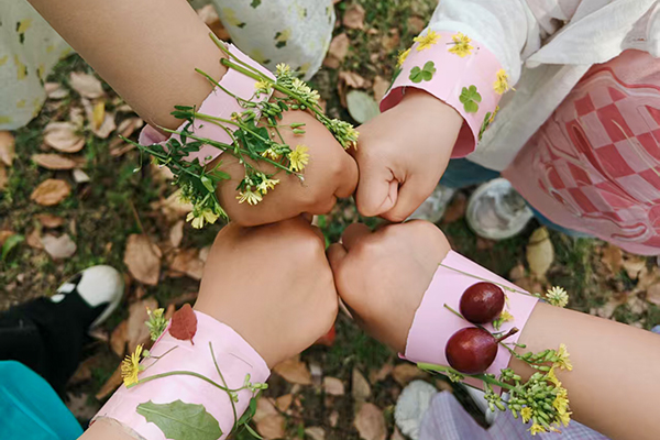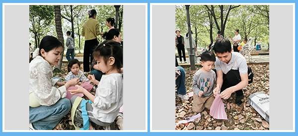 本次活動(dòng)將“親子共讀”與“戶外手工創(chuàng)作”相結(jié)合,在員工閱覽室外,孩子們圍成一圈,以書本為靈感、以自然為素材,共同創(chuàng)作充滿詩(shī)意的春日手工藝品。