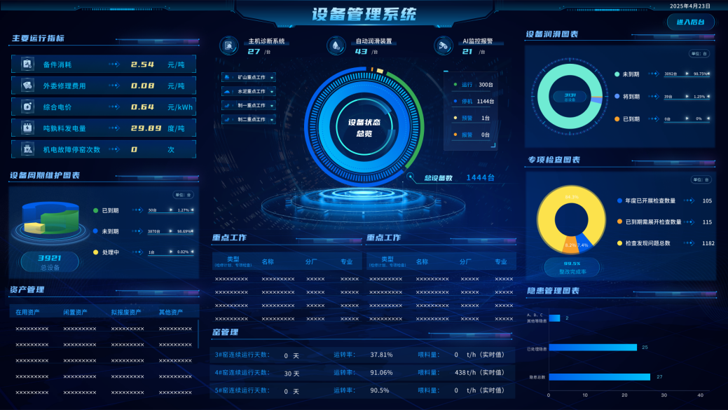 2023年8月,荻港海螺開始引入設(shè)備管理系統(tǒng),2023年11月開始投入使用,截止目前全套系統(tǒng)已完成主機(jī)在線診斷、皮帶機(jī)AI監(jiān)測、智能潤滑、現(xiàn)場視頻監(jiān)控以及DCS系統(tǒng)數(shù)據(jù)融合,實(shí)現(xiàn)了生產(chǎn)線管理“設(shè)備巡檢智能化,維護(hù)維修一體化”。