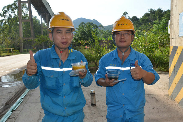 采摘下來的新鮮龍眼和檸檬很快被送往食堂,食堂師傅們忙碌起來,將飽滿多汁的龍眼剝殼取肉,檸檬切片榨汁,熬制當(dāng)?shù)靥禺a(chǎn)涼粉草。龍眼果肉與檸檬片在清冽礦泉水中舒展,釋放出清甜與微酸的完美協(xié)奏;涼粉草熬制的“北流涼粉”,凝凍如墨玉,清涼解暑。天然原料經(jīng)巧手化作兩大消暑佳品——晶瑩剔透的龍眼檸檬水與地道爽滑的“北流涼粉”。冰鎮(zhèn)后的飲品帶著果香與涼意,被后勤人員分裝成杯,及時(shí)送到各崗位。