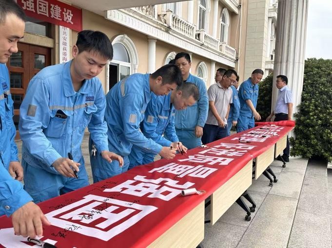 全員動(dòng)起來,質(zhì)量強(qiáng)起來。9月1日,公司辦公樓前已是人頭攢動(dòng)。在公司領(lǐng)導(dǎo)班子的帶領(lǐng)下,各部門負(fù)責(zé)人與員工代表精神抖擻,共同在“加強(qiáng)全面質(zhì)量管理 促進(jìn)質(zhì)量強(qiáng)國建設(shè)”的橫幅上鄭重簽名承諾。一筆一劃,標(biāo)志著荻港海螺質(zhì)量月活動(dòng)隆重開幕。