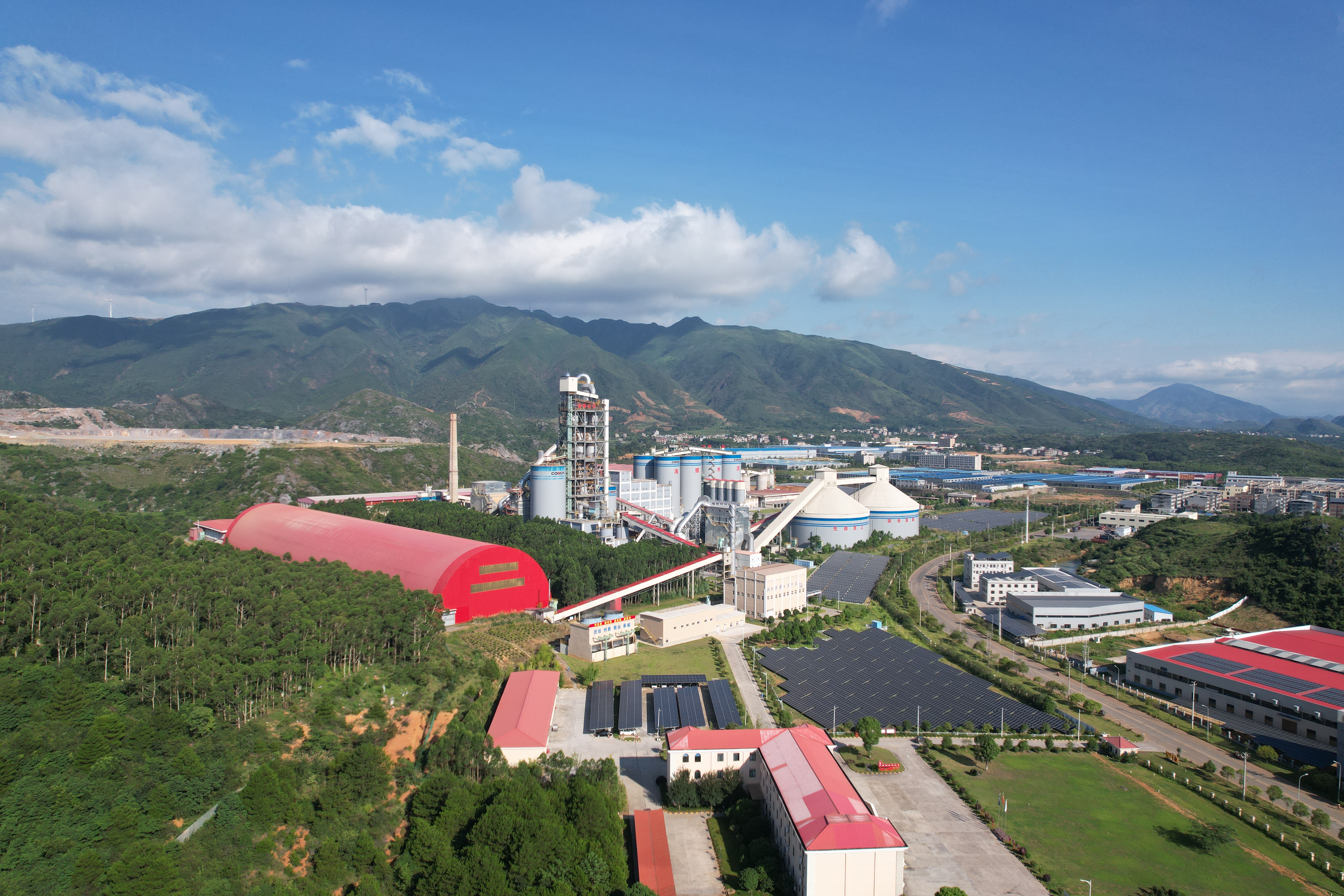 公司現(xiàn)有1條4500td新型干法水泥熟料生產(chǎn)線、220萬(wàn)噸/年水泥粉磨和9MW余熱發(fā)電項(xiàng)目,總投資約9億元。公司新型干法水泥熟料生產(chǎn)線采用國(guó)內(nèi)最先進(jìn)的新型干法窯外分解技術(shù),低N燃燒器,于2023年5月24日完成能效改造。原料粉磨采用具有世界一流技術(shù)的低噪音、低能耗立式銀磨機(jī)、皮帶斗式提升機(jī)。生產(chǎn)線環(huán)保裝備使用美國(guó)技術(shù)國(guó)內(nèi)制造的高效布袋收塵,全線使用先進(jìn)可靠的DCS集散式計(jì)算機(jī)操作系統(tǒng),由中央控制室集中控制,數(shù)字化操作生產(chǎn)用水選用內(nèi)循環(huán)式水冷卻系統(tǒng),各污染物排放均優(yōu)于國(guó)家標(biāo)準(zhǔn)。積極推進(jìn)節(jié)能環(huán)保體系建設(shè),利用光伏建設(shè)助力實(shí)現(xiàn)“雙碳”戰(zhàn)略,分兩期建成10.47MW光伏項(xiàng)目;同時(shí)建成中水處理系統(tǒng),對(duì)公司綠色發(fā)展、節(jié)能減排進(jìn)行精細(xì)化管理,取得了明顯的社會(huì)效益和環(huán)境效益。