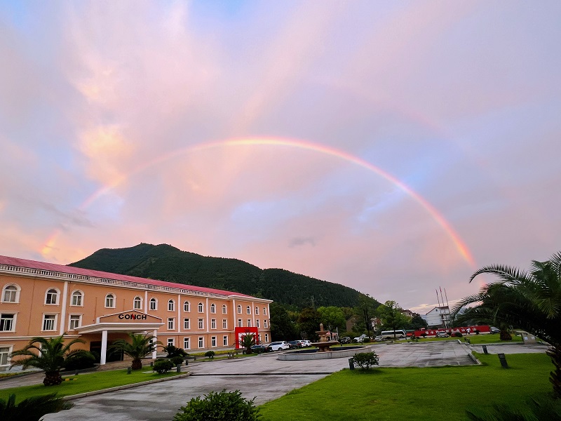 赤橙黃綠青藍紫,誰持彩練當(dāng)空舞?雨后復(fù)斜陽,關(guān)山陣陣蒼……古往今來,描寫彩虹的詩詞有很多,而毛澤東的這首《菩薩蠻·大柏地》則以歡快的筆調(diào),描繪了一幅色彩斑斕的大柏地雨后的壯麗景色,抒發(fā)了作者的革命豪情。在海螺看到美麗彩虹,您會發(fā)出怎樣的感慨呢?