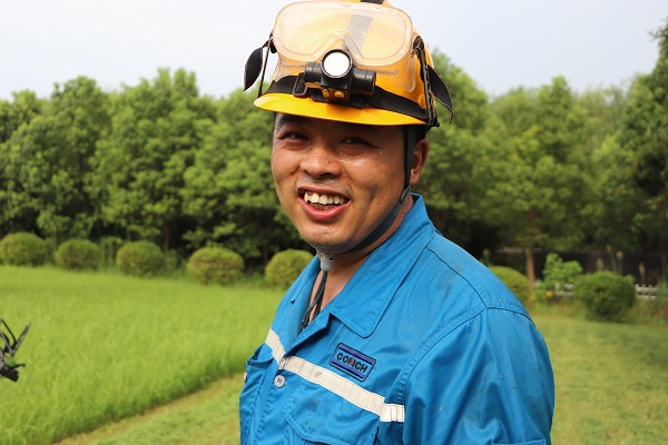 正在前往一線喂料樓的章利,勞保服已被汗水所浸透,干濕分明,手套、安全帽、勞保服在保障員工安全的同時(shí),也見(jiàn)證著海螺人默默的付出。(龍新陽(yáng)/攝)