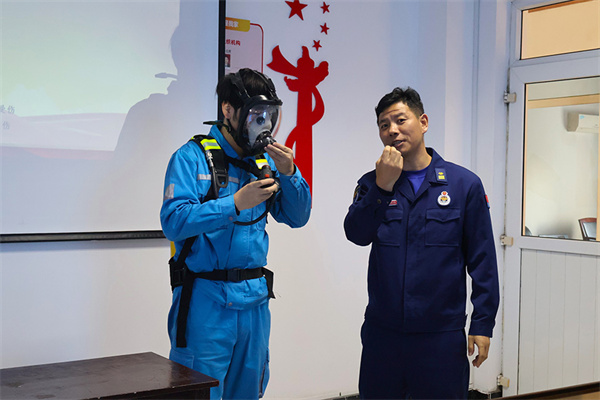 安徽蕪湖,海螺水泥部室員工認(rèn)真參與火災(zāi)事故應(yīng)急演練,鏡湖區(qū)消防救援大隊(duì)的消防員現(xiàn)場向大家講解過濾式自救呼吸器、緩降器、消火栓等應(yīng)急器材的使用方法。