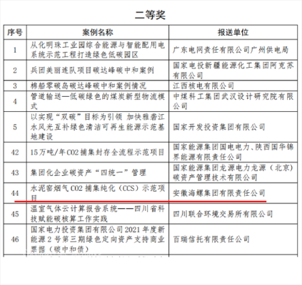 ●《水泥窯煙氣二氧化碳捕集純化與利用示范項(xiàng)目》榮獲安徽省十大低碳應(yīng)用場景