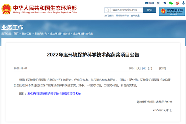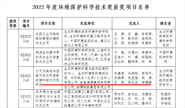 ●《大氣污染物與溫室氣體協(xié)同控制政策和技術(shù)示范研究》獲評2022年度環(huán)境保護(hù)科學(xué)技術(shù)獎二等獎