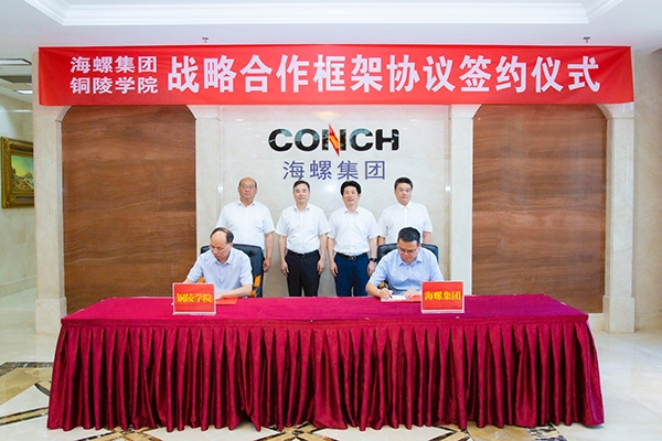 2025年8月19日,海螺集團(tuán)與銅陵學(xué)院合作協(xié)議簽約儀式在集團(tuán)總部舉行。海螺集團(tuán)黨委書記、董事長楊軍,銅陵學(xué)院黨委書記吳照明出席簽約儀式。海螺集團(tuán)副總經(jīng)理李群峰,銅陵學(xué)院副校長夏美武代表雙方簽署協(xié)議。海螺集團(tuán)副總經(jīng)理丁鋒,銅陵學(xué)院人事處處長王亮等參加簽約儀式。
