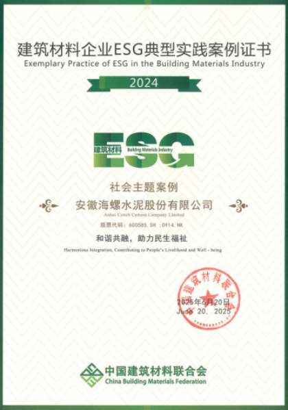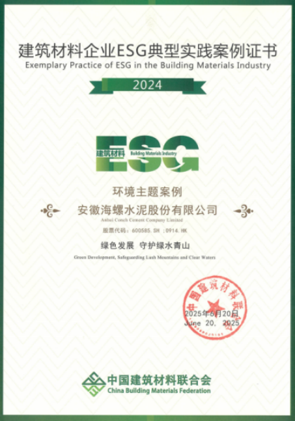 2025年6月20日,由中國(guó)建筑材料聯(lián)合會(huì)主辦的“首屆建筑材料ESG可持續(xù)發(fā)展論壇”在京舉辦,論壇以“綠色轉(zhuǎn)型 共建可持續(xù)未來(lái)”為主題,旨在共同研討ESG理念在建材行業(yè)的實(shí)施路徑,為推動(dòng)行業(yè)綠色低碳安全高質(zhì)量發(fā)展注入新動(dòng)能。海螺水泥應(yīng)邀出席論壇并榮獲多項(xiàng)ESG榮譽(yù)。