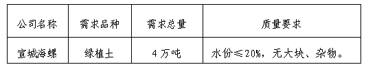 為做好安徽宣城海螺水泥有限公司綠植土供應工作,確保產(chǎn)品的可靠性、穩(wěn)定性,規(guī)范采購行為,本著“公開、公平、公正”的競爭原則,選擇經(jīng)營能力較好、產(chǎn)品質(zhì)量較優(yōu)、保供和服務(wù)能力較強的供貨單位,特將本次招標的有關(guān)事宜公告如下,歡迎有實力的投標單位參加本次招投標活動: