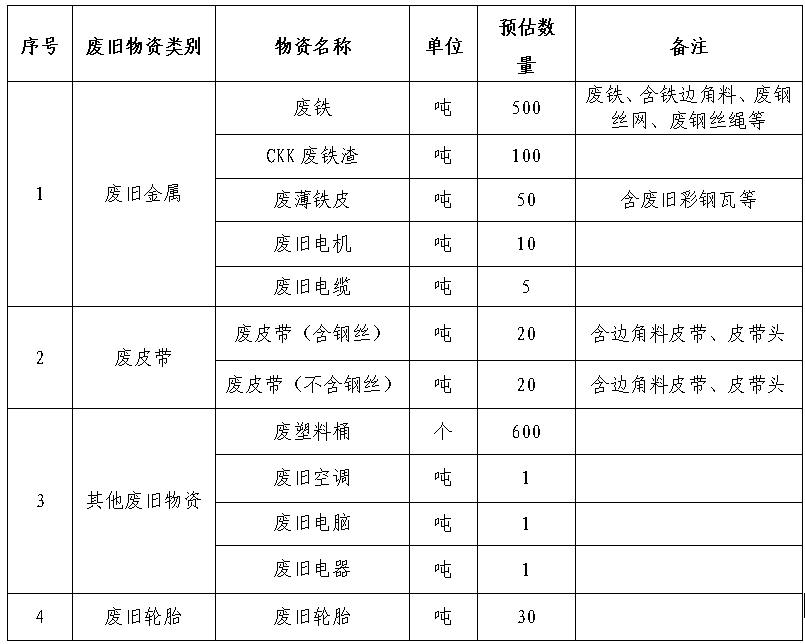 1.包含但不限于以上廢舊物資類別,同時數(shù)量僅為預估數(shù)量,具體數(shù)量以實際過磅或點數(shù)回收數(shù)量為準。
