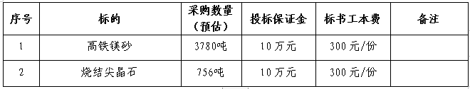 1.1招標(biāo)名稱:安徽海螺暹羅耐火材料有限公司高鐵鎂砂和燒結(jié)尖晶石招標(biāo)。