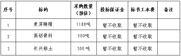 根據(jù)高鋁磚及堿性磚分廠(chǎng)2023年10-12月份產(chǎn)品生產(chǎn)計(jì)劃,結(jié)合前期麥芽糊精、高鋁骨料、粘土等3類(lèi)原材料合同執(zhí)行及庫(kù)存消耗情況,為保證生產(chǎn)所需原材料有序銜接,同時(shí)進(jìn)一步降低采購(gòu)成本,現(xiàn)本著“公開(kāi)、公平、公正、透明”的原則公開(kāi)招標(biāo),誠(chéng)邀經(jīng)營(yíng)資質(zhì)能力較好、保供和服務(wù)能力較強(qiáng)的單位參加投標(biāo)?,F(xiàn)就招標(biāo)相關(guān)事項(xiàng)公示如下: