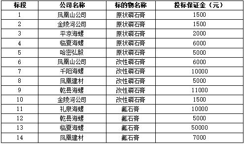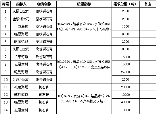 說明:為確保招標(biāo)的公平性、合理性,本次招標(biāo)氟石膏、磷石膏指標(biāo)為固定指標(biāo),不允許調(diào)整。