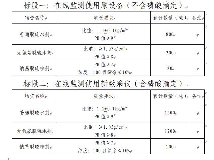 3.質(zhì)量指標(biāo):滿足國家化工合格品相關(guān)質(zhì)量控制標(biāo)準(zhǔn),產(chǎn)品對(duì)設(shè)備無腐蝕,對(duì)熟料質(zhì)量和正常生產(chǎn)無影響。同時(shí)預(yù)計(jì)招標(biāo)人將在2024年2月份開始在線監(jiān)測使用新數(shù)采儀(含磷酸滴定),要求中標(biāo)單位提前做好相關(guān)準(zhǔn)備,屆時(shí)收到招標(biāo)人正式通知后馬上啟動(dòng)。