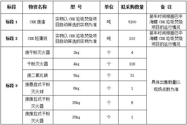 3.合同期限:標(biāo)段1(CKK廢渣):2024年3月15日至2025年3月14日;標(biāo)段2(CKK輕薄鐵):2024年3月01日至2024年8月31日;標(biāo)段3(廢滅火器):2024年3月01日至2024年3月31日。