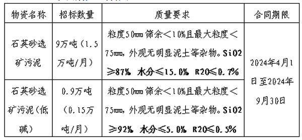 濟(jì)寧海螺水泥有限責(zé)任公司擬對石英砂選礦污泥公開招標(biāo)采購(招標(biāo)編號:BID2024022500006),選定中標(biāo)人。現(xiàn)將相關(guān)事宜公示如下: