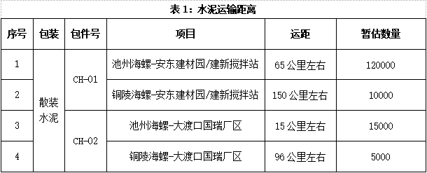 備注:貨車、不走高速情況下的導(dǎo)航距離;池州海螺發(fā)運(yùn)42.5散裝和32.5散裝,銅陵海螺發(fā)運(yùn)52.5散裝。