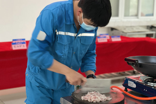 4月28日下午3點(diǎn),公司員工大食堂搖身變?yōu)椤皬N藝技能大賽”的火熱賽場(chǎng)。率先登場(chǎng)的食堂專業(yè)廚師們一展身手,精湛刀工上下翻飛,火候拿捏精準(zhǔn)到位,手撕牛肉紋理分明、金蟾吐瑞造型精巧、什錦涼拌菜色彩繽紛、生煎土雞香氣四溢,一道道色香味俱全的佳肴接連出鍋,引得現(xiàn)場(chǎng)觀眾駐足圍觀、聽(tīng)著名字都流口水了。