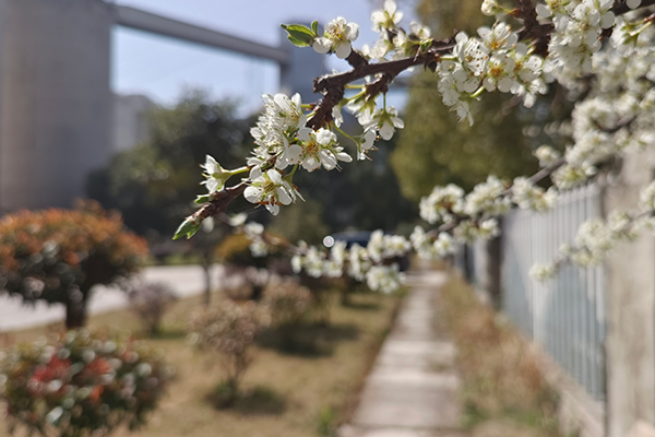 春日的暖陽斜斜地鋪在碼頭廠區(qū)的鐵柵欄上,幾枝白桃花從青灰色的磚墻上探出。江邊貨輪的汽笛聲里,裹著若有若無的香氣,把金屬與混凝土的世界,釀成了春天的模樣。