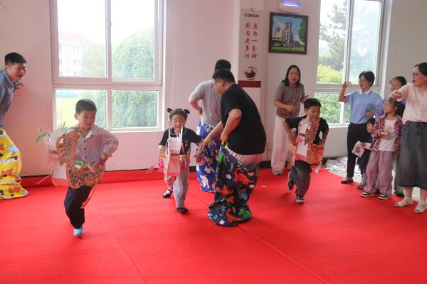 六一兒童節(jié)專屬的趣味游戲區(qū)同樣熱鬧非凡?!按笕舜筇?兒童劃龍船”游戲前,孩子們排著整齊隊(duì)伍,大聲呼叫,為爸爸媽媽加油打氣,“爸爸,快點(diǎn)跳,有人要追上你了……”“媽媽,加油,你是最厲害的……”, 爸爸媽媽們聽到孩子們的吶喊,牟足了勁往前跳,孩子們接棒成功后,飛快的跑了出去,贏得了周圍的小伙伴們陣陣歡呼。家長(zhǎng)和孩子們默契配合,完成挑戰(zhàn),在游戲中增進(jìn)了親子感情。