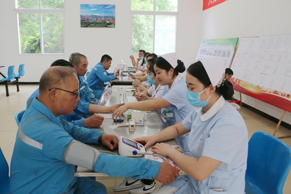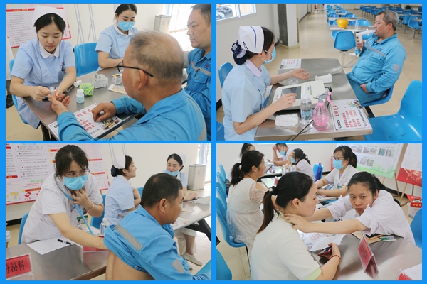 講座結束后,來自普通外科、內分泌科、呼吸內科、婦科、中醫(yī)康復科、檢驗科等科室的資深專家在職工食堂一字排開,為員工提供包括血壓血糖檢測、心肺聽診、B超檢查、中醫(yī)把脈等在內的全方位健康服務。專家們不僅耐心解答各類健康疑問,更針對水泥行業(yè)常見的職業(yè)健康問題給予了專業(yè)指導。