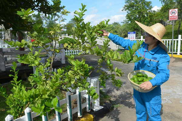 “剛從崗位下來喝上一口,又甜又解渴!”接過冰涼飲品的一線員工,臉上漾開滿足的笑容。公司豐收的水果除了制作特色清涼飲品,還供應(yīng)職工食堂,為員工果盤增添新鮮品類。從前期豐收的荔枝、芒果、西瓜,到如今持續(xù)供應(yīng)的龍眼、檸檬,再到長勢喜人的菠蘿蜜、香蕉、楊桃、石榴、釋迦……源源不斷的“廠區(qū)鮮果”讓員工們時(shí)刻感受到生態(tài)綠化帶來的實(shí)惠。