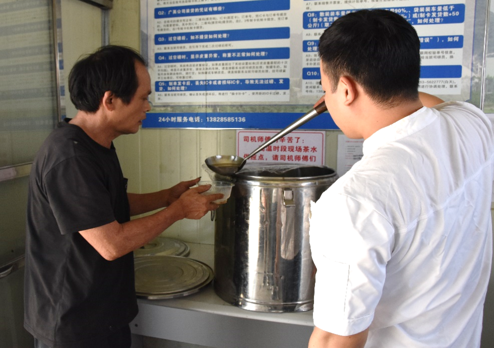 二線發(fā)運廣場上,貨運司機們駕著車輛往來穿梭,九月陽光把駕駛室烤得像“蒸籠”。公司特意在制卡房設(shè)“清涼供應(yīng)點”,工作人員持長勺為休整的司機舀上滿滿的一碗清熱綠豆湯?!芭荛L途最怕熱天,這兒隨時都能享受到公司的夏日關(guān)懷,太貼心了!”剛結(jié)束運輸?shù)膹垘煾到舆^綠豆湯不住夸贊。小小的制卡房,成了司機們的“清涼港灣”,讓奔波的物流崗位也被關(guān)懷緊緊包裹。